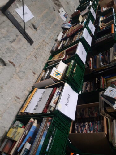 Rekorde können offenbar immer weiter gesteigert werden. Nach den Rekordmengen der vergangenen Jahre ist der Bücherberg im Schiefen Turm in diesem Jahr noch einmal gewachsen. Tagelang waren Aktive unserer Gruppe zusammen mit sehr engagierten Unterstützerinnen und Unterstützern der Menschenrechtsarbeit damit beschäftigt, die Bücherspenden zu sichten und zu sortieren. Eine Mammutaufgabe. Doch diesmal gelang es – noch ein Rekord – innnerhalb von vier Tagen, die gigantische Menge an Gedrucktem so zu präsentieren, dass die Besucherinnen und Besucher ganz gezielt nach ihrer Wunschlektüre für Herbst und Winter stöbern können.
